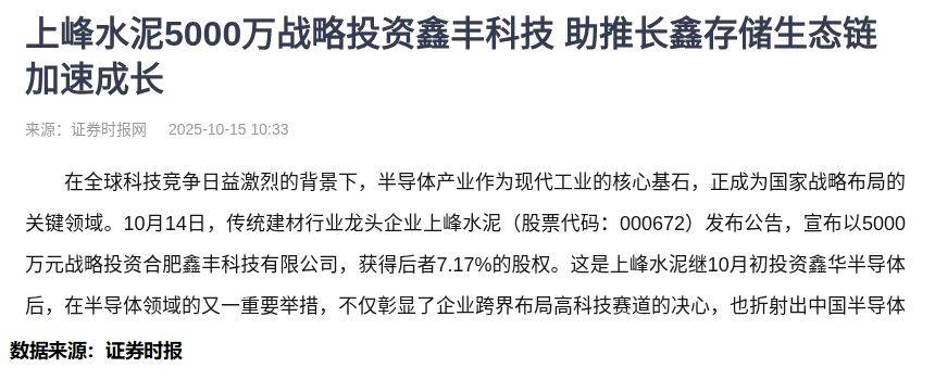 回到开头提到的上峰水泥投资案例。为什么一家水泥企业要跨界投资半导体?表面看是多元化布局,实则是抓住了国产替代的历史机遇。