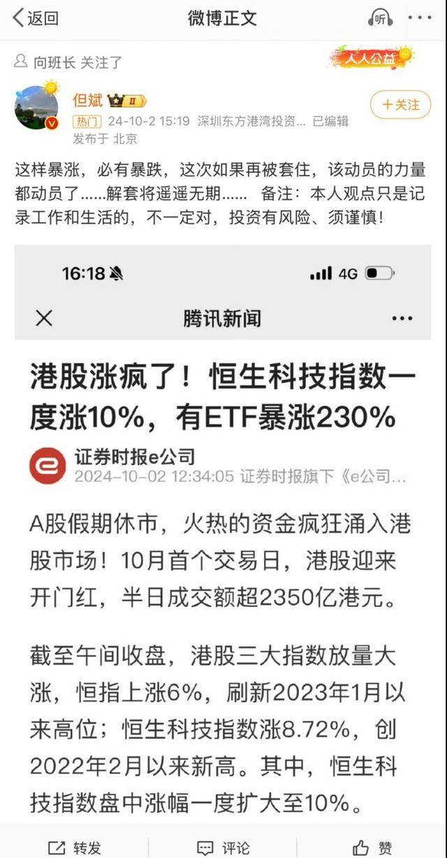 面对这种情况,投资者们显得十分不满。有些人认为,但斌因踏空A股而感到酸涩,认为港股的暴涨使得A股的性价比仍高于美股。更有投资者指责他过早预警暴跌风险,并质疑其作为价值投资者的立场。