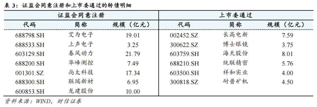 截至2026年1月5日,待发新券中证监会同意注册的转债7家,规模共计85.83亿元;已通过上市委的转债6家,规模共计33.61亿元。